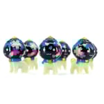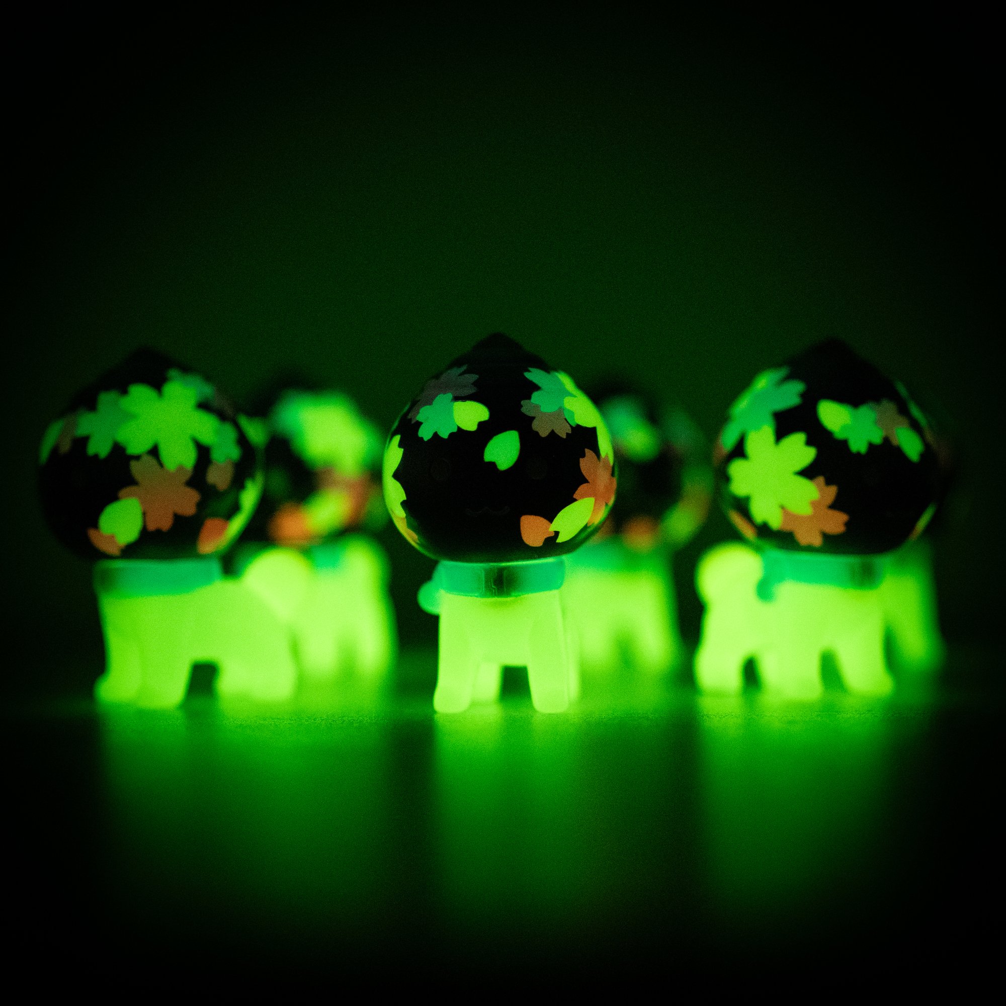 Glow in the dark soft vinyl painted with glowing sakura cascading down. Also features hand painted details in acrylics. Designed to be a matching set to the Pearly Sakura Momo.
